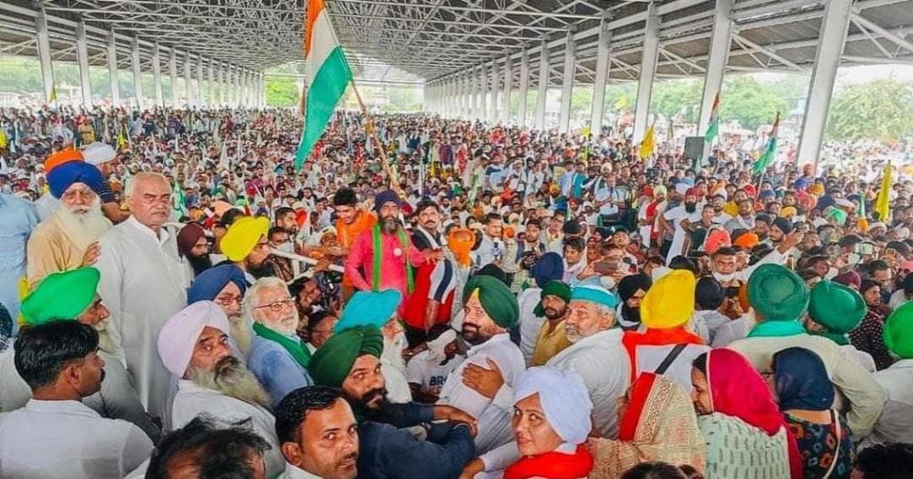 हरियाणा एसडीएम की बर्खास्तगी की मांग को लेकर किसान संगठनों की महापंचायत के ...